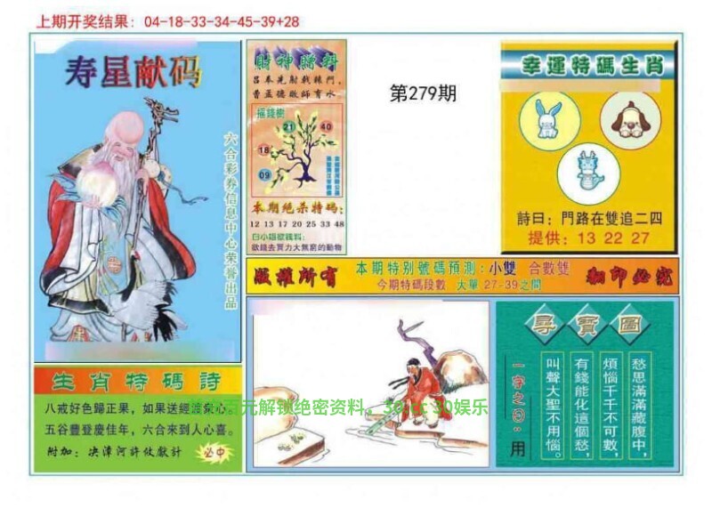 279期:七肖【鼠鸡猴狗龙猪】开:兔27准